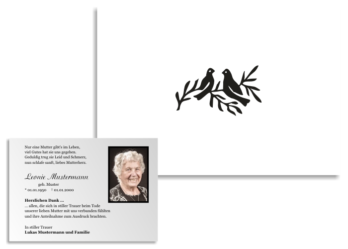 Persönliche Danksagung Trauer um Mutter, Vater, Oma und Opa. Schlichte Danksagung Trauer im Todesfall, Beerdigung, Trauerfall. Danksagungskarten Trauer, Dankeskarten, Trauerdanksagungen, Trauerkarten